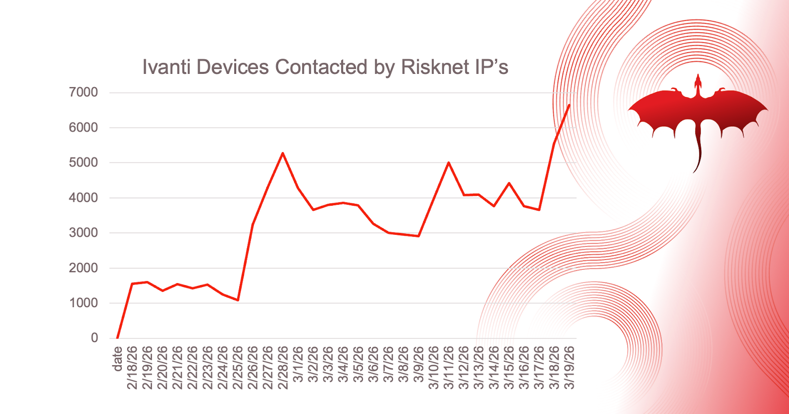 In the closing days of March 2026, Ivanti devices showed a significantly sharper rise in connection attempts from Risknet infrastructure than the other VPN platforms included in this review. That does not, on its own, confirm a new exploitation campaign, but it does point to elevated risk and a need for heightened attention from operators of Ivanti Connect Secure and other internet-facing VPN appliances.
